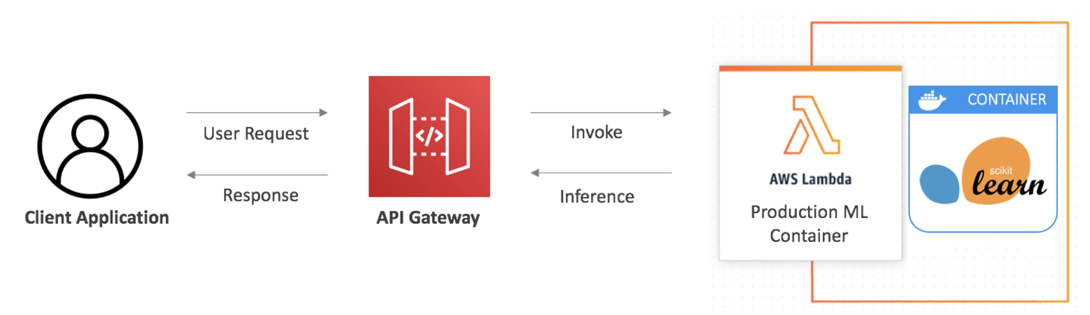 The lambda function loads a trained model, feeds the user inputs and responds with the